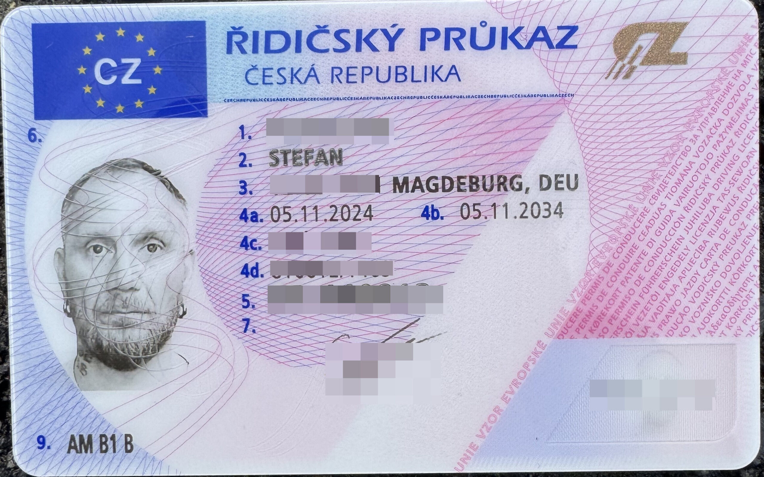 Sven hat sehr genau seinen EU Führerschein in Tschechien nach 7 Monaten erhalten. Am Anfang Januar Erhalt der Meldebescheinigung, dann Prüfung, und wenig später Erhalt.