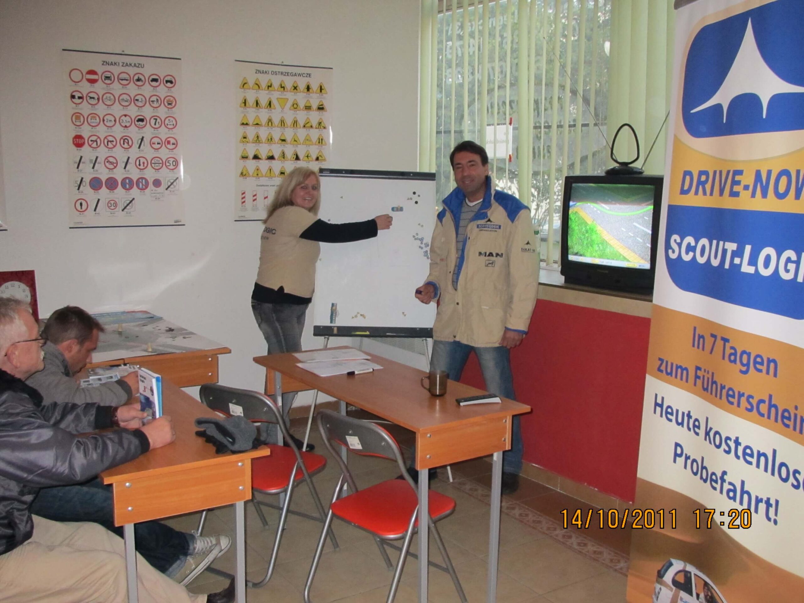 Fahrlehrerin Jasmin bei der Theorie-Ausbildung. Alle Teilnehmer haben eine deutsche “Vorgeschichte” – Auflage der MPU